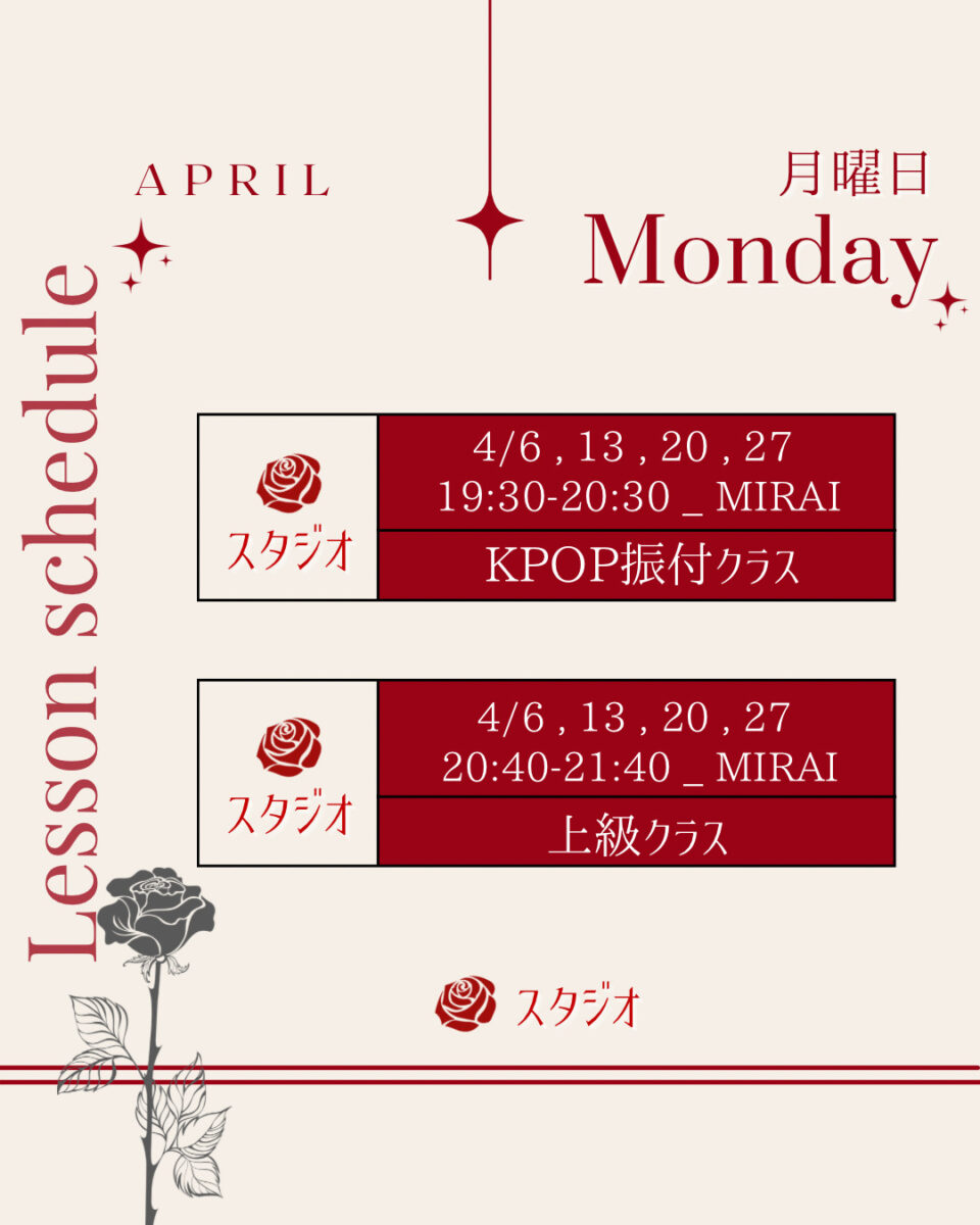 スケジュール変更等につきましては、mri. dance spaceインスタグラムのストーリーにて発信いたしますので、ご確認ください。